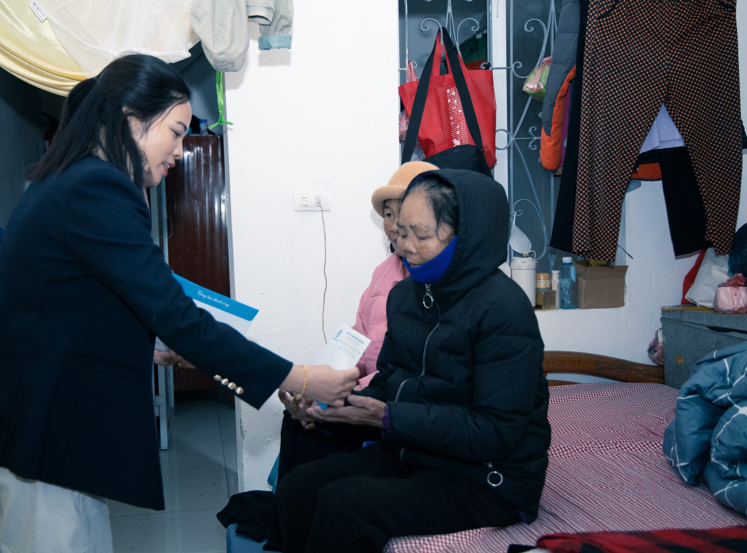 Dù thời tiết giá rét, các bệnh nhân đã có mặt đầy đủ đúng giờ để chờ đón đoàn thiện nguyện. Đại diện Minh Dũng Group, Phó Tổng Giám đốc Thường trực – Bà Nguyễn Thị Hằng đã trực tiếp thăm hỏi, ân cần động viên và trao tận tay từng phần quà đến các cô chú, anh chị trong xóm chạy thận. Những món quà không chỉ mang giá trị vật chất, mà còn gửi gắm sự quan tâm, sẻ chia và thấu hiểu trước những hoàn cảnh đầy gian truân.