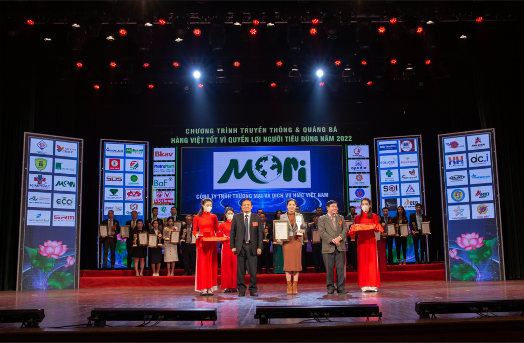 Tại chương trình Hàng Việt tốt vì quyền lợi người tiêu dùng 2022, Mori vinh dự được tao tặng giải thưởng Top 10 Thương hiệu vàng Việt Nam 2022, tiếp tục khẳng định vị thế trên thị trường với các dòng sản phẩm chất lượng, an toàn, hiệu quả và thân thiện với môi trường